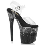 8" (100mm) Heel, 4" (200mm) Platform Ankle Strap Sandal Featuring Sprinkle Rhinestone Design on the Upper Half of the Platform Bottom & Hee